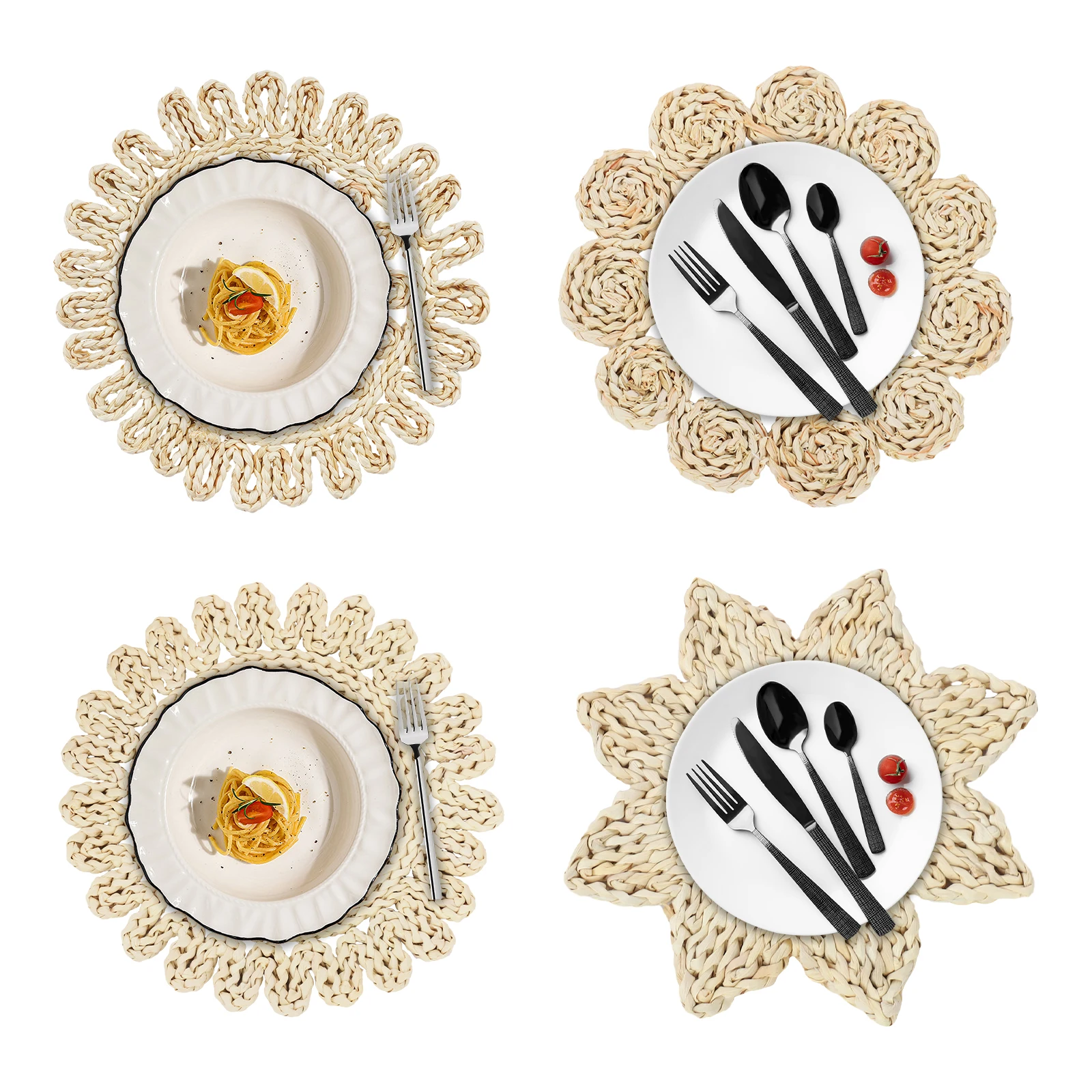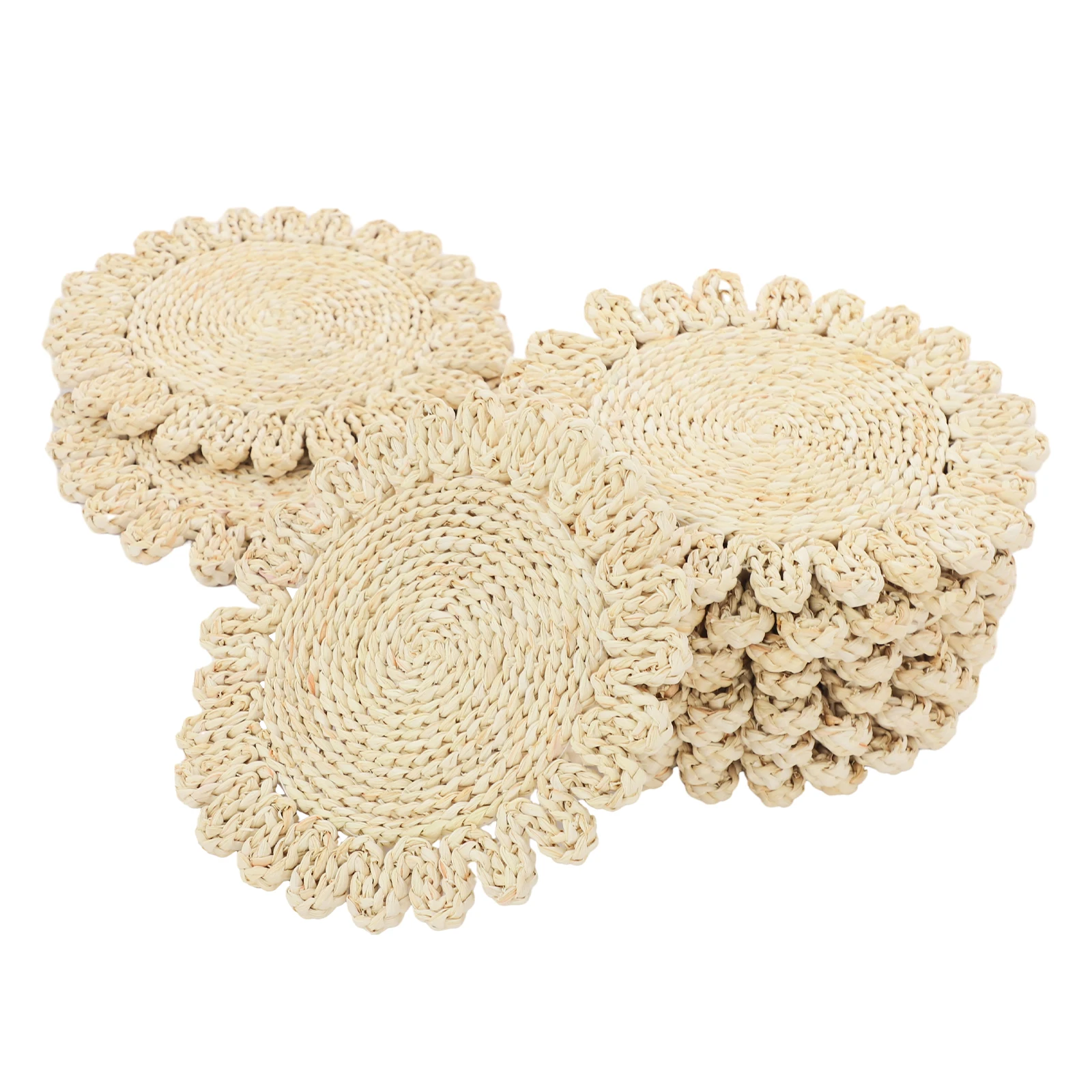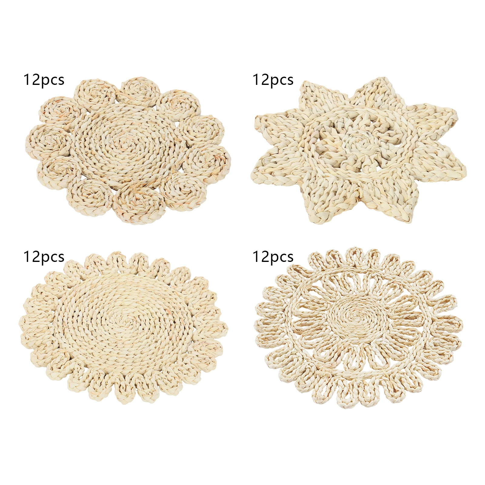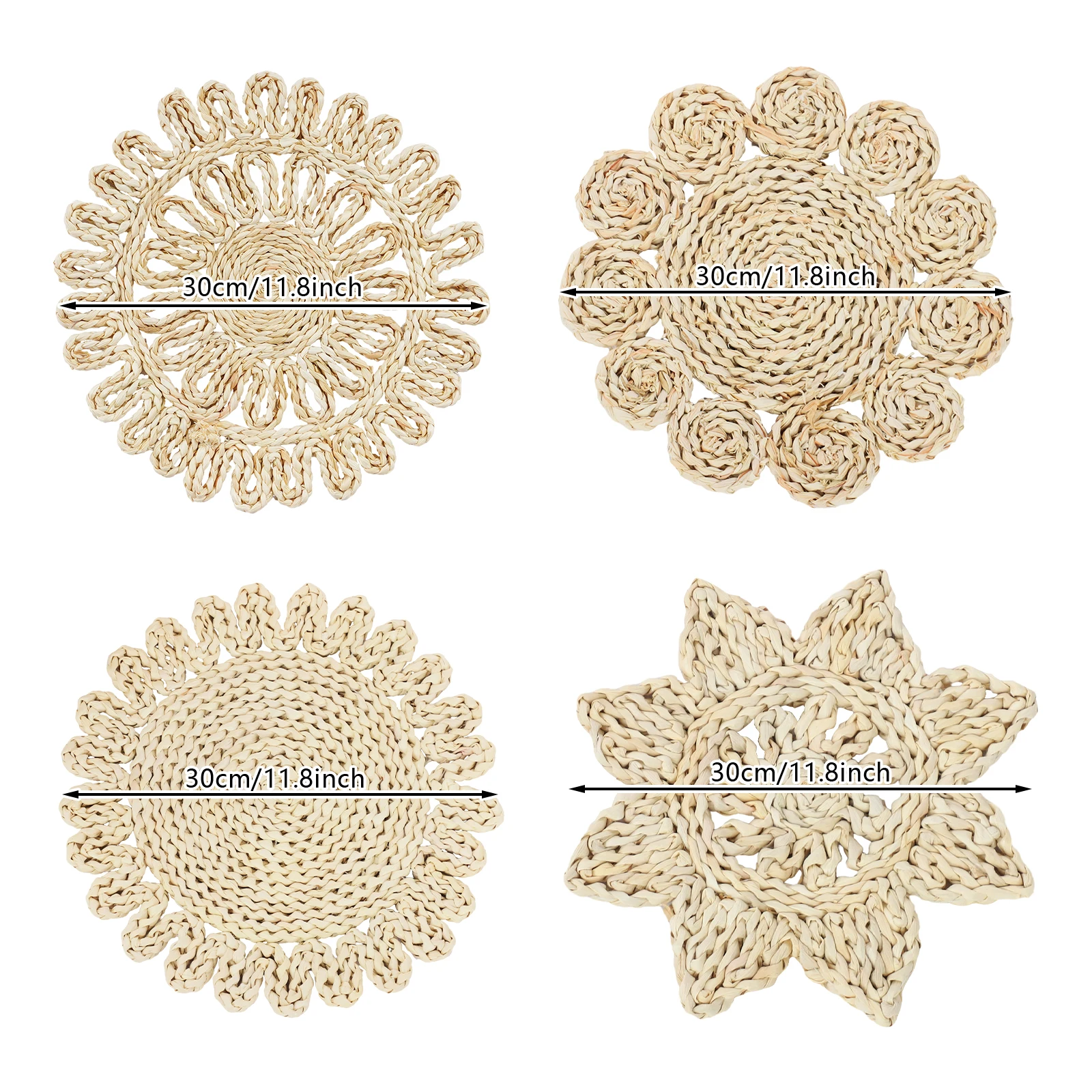 12 Pack Round Woven Placemats Heat Resistant Table Mats Natural Corn Husk Dining Tableware Place Settings for Home Restaurant
