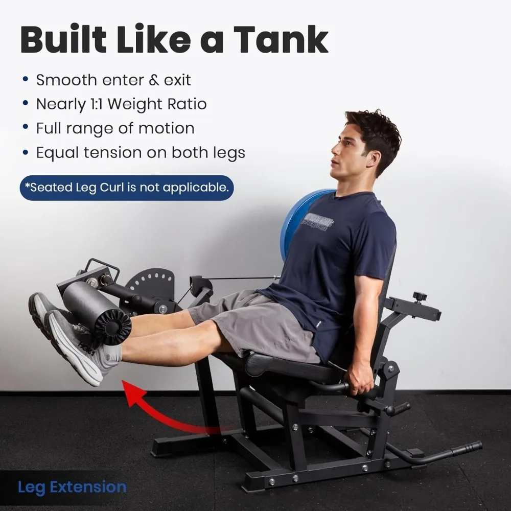 Leg Extension and Curl Machine V4.0, 1100lbs Capacity Adjustable Seated Leg Extension, Lying Leg Curl Bench, Cable Operated 2” Plate Loadable Lower Body Exercise Equipment for Gym